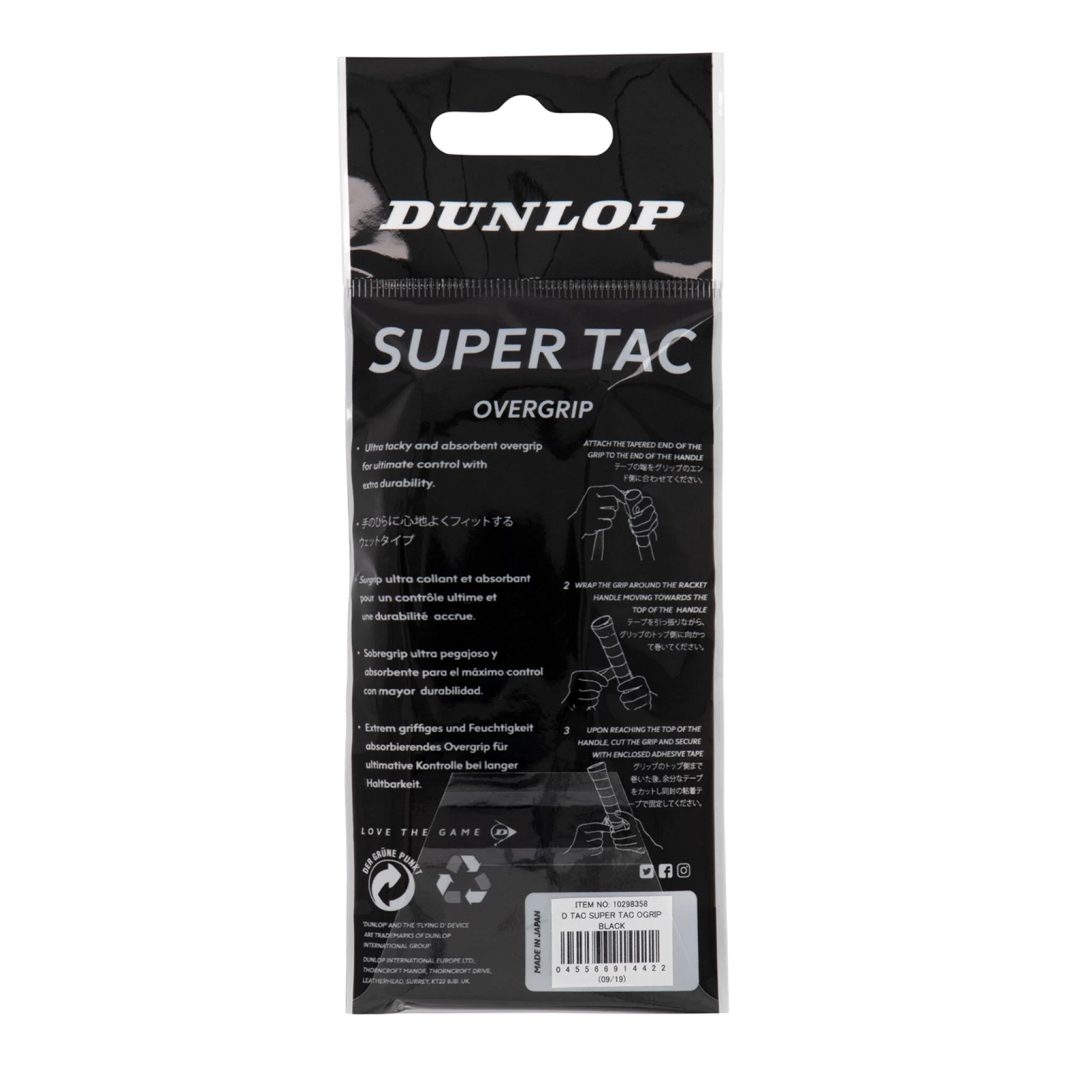 The sticky surface absorbs sweat so players always have a perfect connection with the racket. Thickness: 0.55 mm.