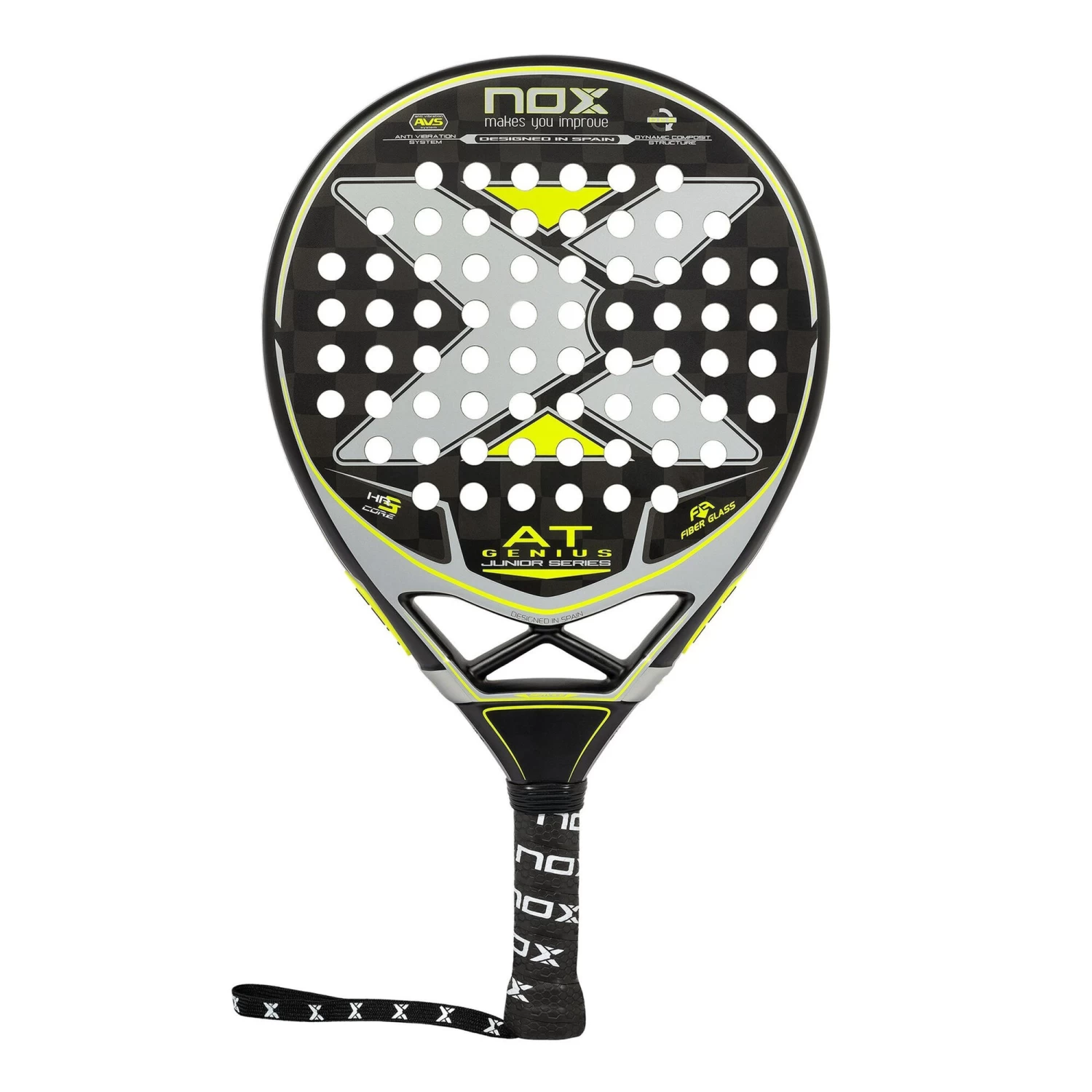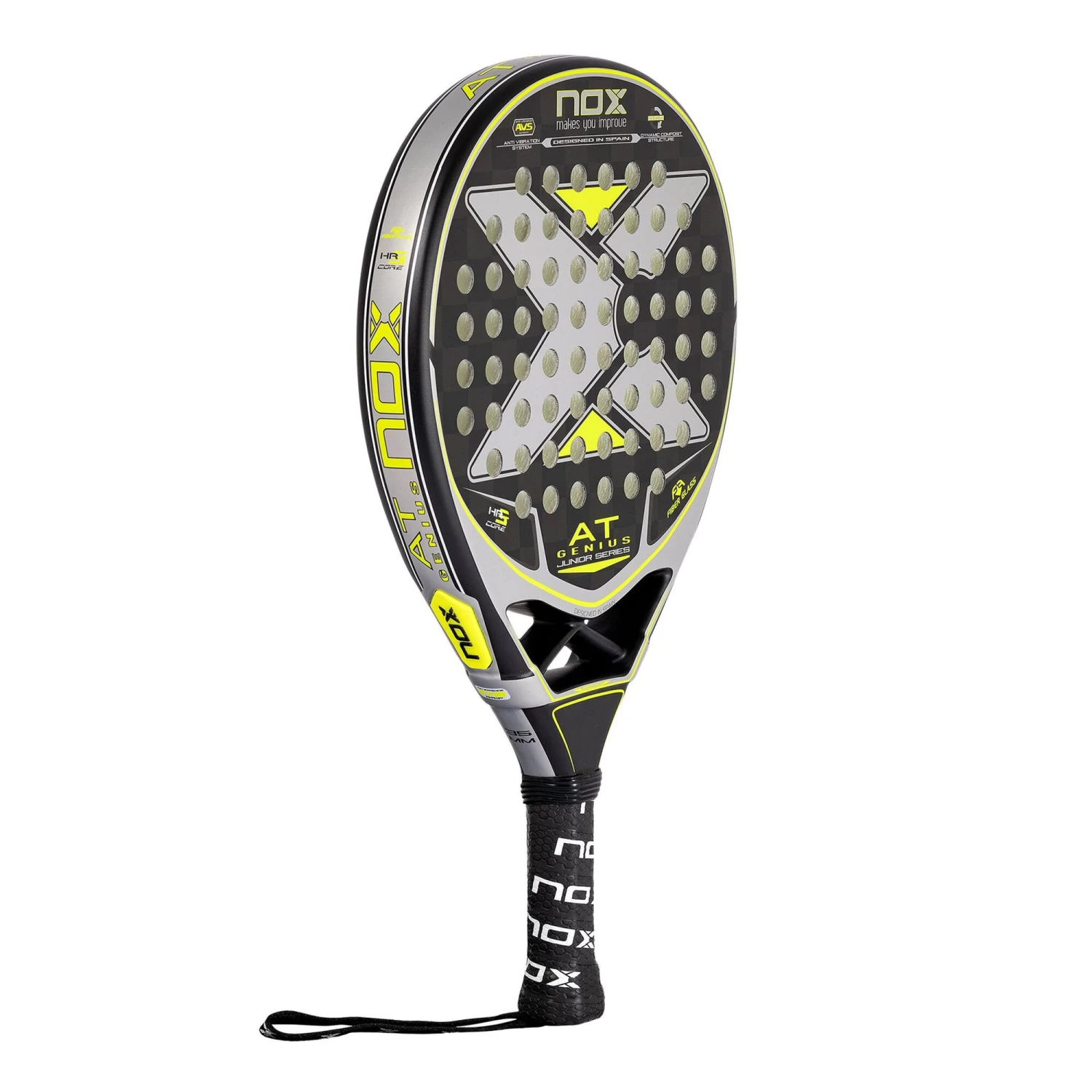 The PALA AT10 GENIUS JR BY AGUSTIN TAPIA is a racket for junior players who want to play with a racket that offers a great balance between power and control and the regular size but with a handle adapted to their hand size. This padel racket stands out for its great performance, power and solidity. It is composed of ultra-light materials to reach weights between 290-315 grams.